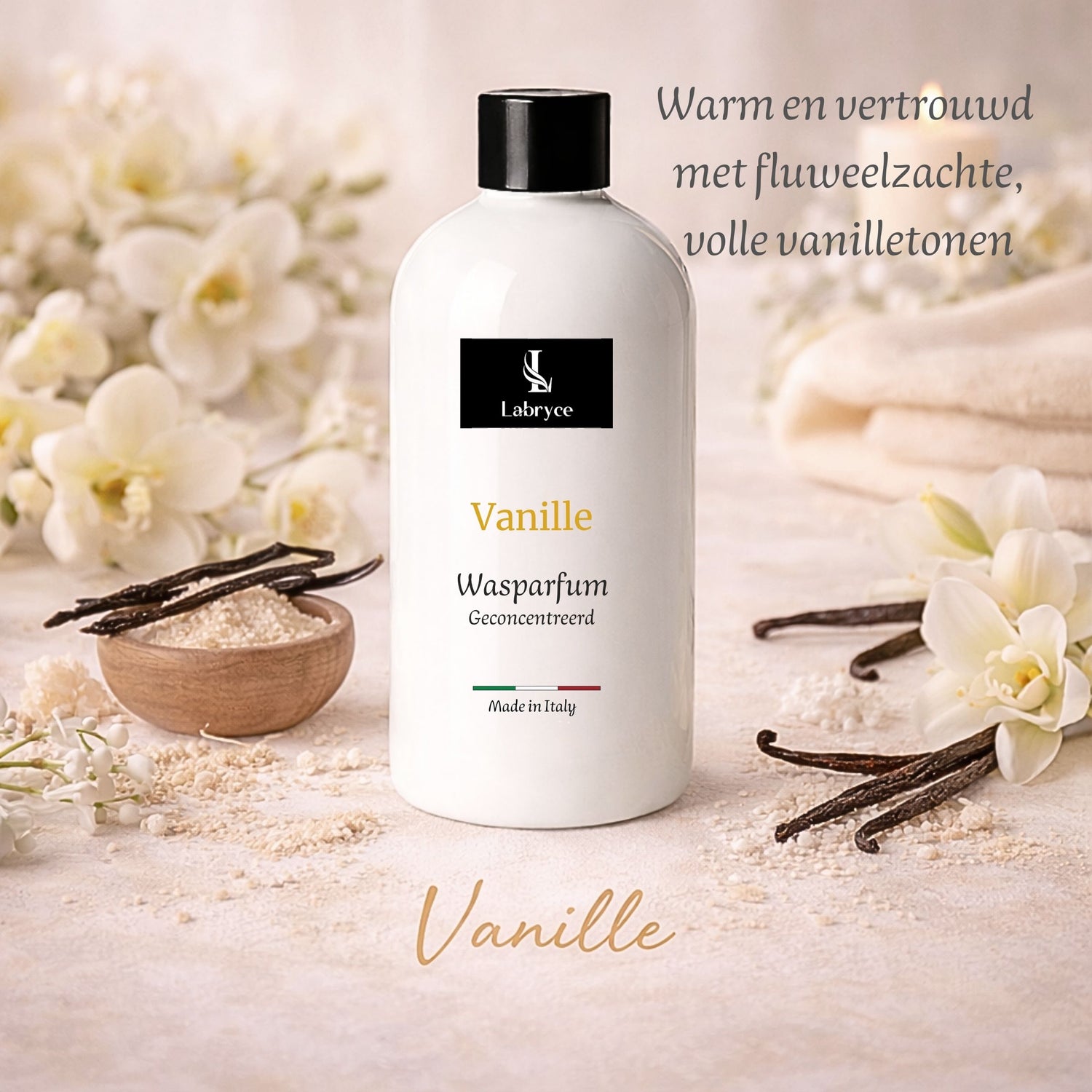 Wasparfum Vanille neemt je mee in een warme, verleidelijke geurbeleving waarin elke vezel wordt omhuld door fluweelzachte, volle vanilletonen. Een geur die doet denken aan comfort, geborgenheid en pure zachtheid, alsof je wasgoed een liefdevolle omhelzing krijgt.